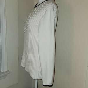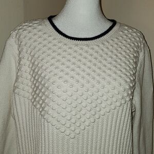 preowned very good condition Talbots women's white with navy trim sweater bobble knit 3D style