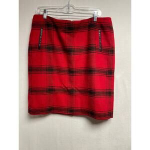 Talbots women’s wool skirt red black plaid size 14 P lined zip back