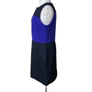 Talbots wool sleeveless color block dress with back invisible zipper size 12. Blue black professional career work teacher wear. Length 37”, waist 17.5”, bust 21”