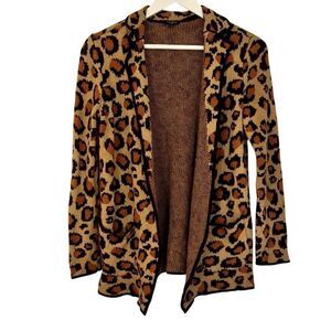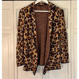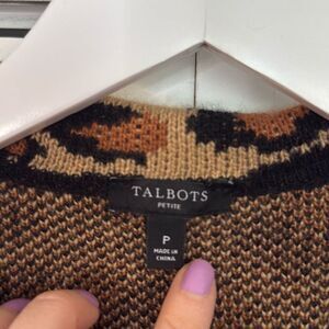 Talbots wool blend leopard sweater blazer cardigan small petite