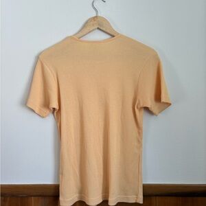 Vintage talbots butter yellow soft and stretchy ribbed tee. This is such a perfect 90’s mom vibe and wardrobe basics.