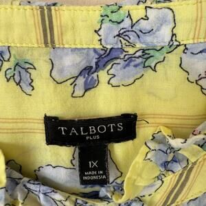 Talbots yellow and blue flower long sleeve ruffle blouse size 1X