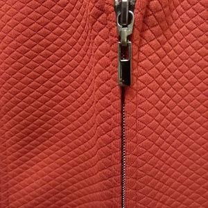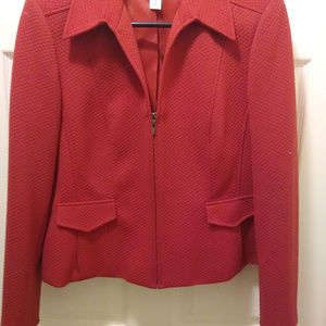 Weekend to workday! Talbots jacket, with zip front and zippers on each cuff. Two slash pockets (below what appears to be pocket flaps). Hits below waist, with slight flare at hips.