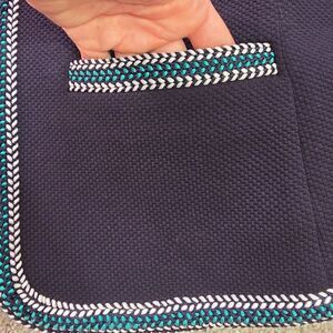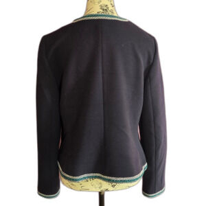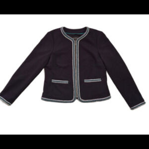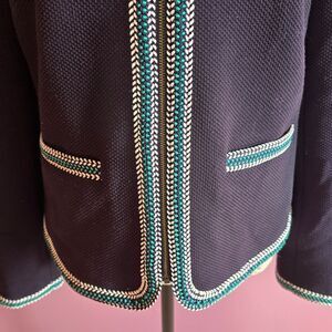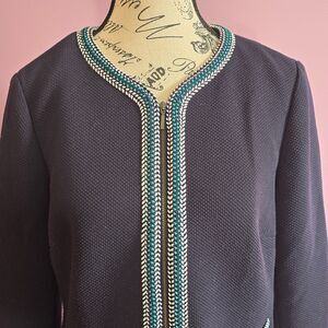 Talbots zipper front navy blazer jacket with pockets embroidered Sz 6