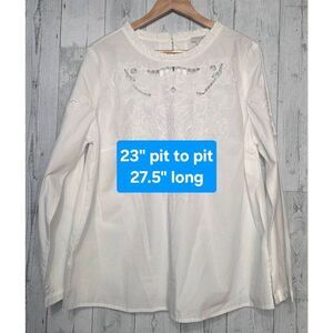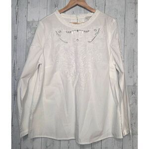 Talbots 100% Cotton Eyelet and Embroidered Detail Feminine Long Sleeve Blouse Sz 1X
