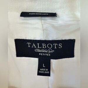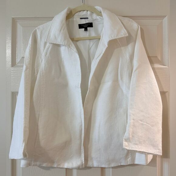 Talbots 100% Irish Linen White Blazer Open Front Jacket Size Large