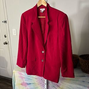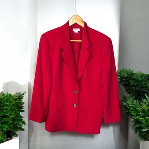 This vibrant red blazer from Talbots is crafted from a structured fabric, offering a tailored and polished look. With its classic lapels and fitted silhouette, it's perfect for professional or formal occasions.