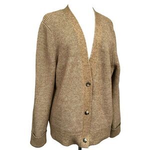 Talbots 3 Button V-Neck Boyfriend Cardigan Sweater Sz XL Heathered Camel Tan