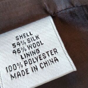 This silk and wool jacket would be perfect for over neutrals: black, cream, brown dresses or pants. Four buttons down the front. Fully lined. Size 6 measures 36 at chest, 46 at bottom hem. 22 long from slightly padded shoulder to hem. Add a little spice with this cutie!