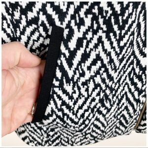 Talbots Women’s Black and White Herringbone Zip Front Jacket with Black Color-block Sleeves Sz 8 EUC. Tiered y cropped style. Stretchy, stylish and work/career ready. Please see photos for additional details. Pit to Pit 19“ Waist 36“ Length 23“ Sleeve 23“