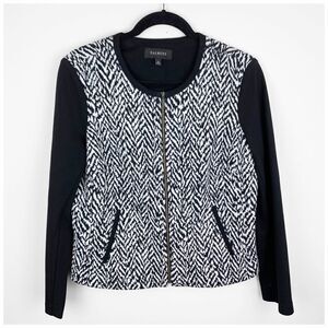 Talbots B/W Herringbone Zip Front Cropped Jacket Black Sleeves Sz 8