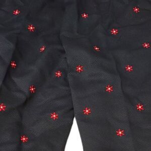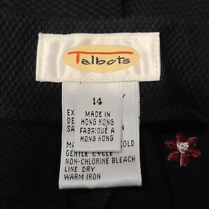Talbots Black Red Flower Embroidered Capris, side zipper, cotton pique fabric, no pockets for a smooth flattering fit