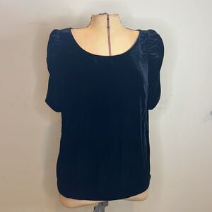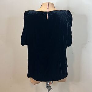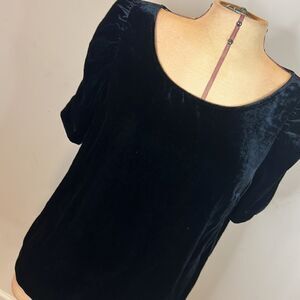 Talbots Black Velvet Blouse with Gathered Sleeves - Size Medium Petite