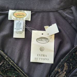 Size small. The collar & bottom of the sleeves are embellished. Perfect for a night out on the town ! Brand new.