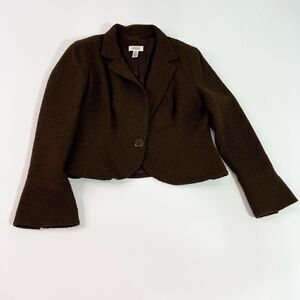 Talbots Blazer Jacket Women 12 Wool Blend Brown Single Button Bell Sleeve Career