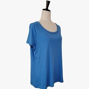 Talbots Blue Scoop Neck Crochet Detail Short Sleeve T-shirt Size XL