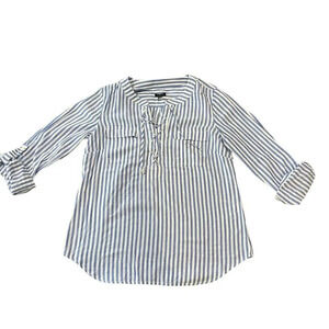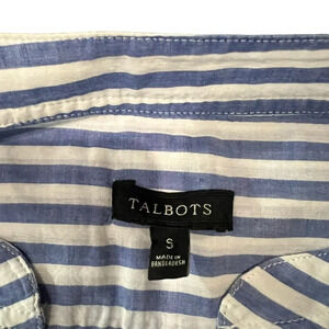 Talbots Blue & White Front Tie Striped Tunic Blouse Top Top Size Small