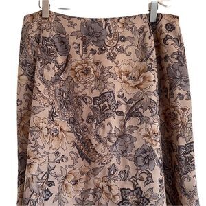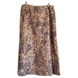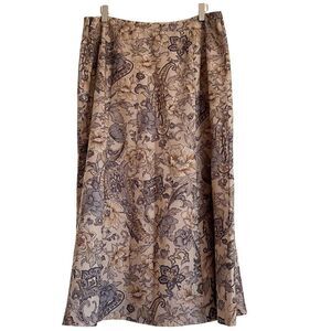 Talbots Boho Paisley + Floral Wool Midi Skirt Grey, Cream + Tan Size 14