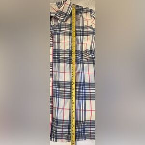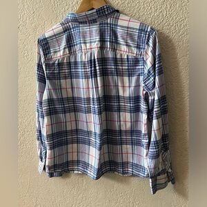 Talbots Button Down Plaid Shirt Size Large 100% Cotton White Blue Red