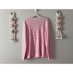 Talbots Cable Knit Sweater Button Detail Pink Nylon Lambswool Blend Size XL