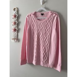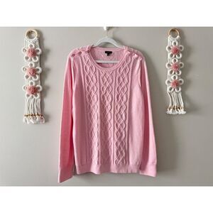Keywords: Talbots, Cable Knit Sweater, Pink Sweater, Button Detail, Crewneck Sweater, Women's Sweater, Cotton Blend, XL, Extra Large, Long Sleeve, Casual Sweater, Preppy Style, Classic Style