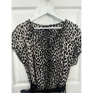 Talbots Cap Sleeve Belted Abstract Leopard Print V-Neck Midi Dress sz 16 EUC