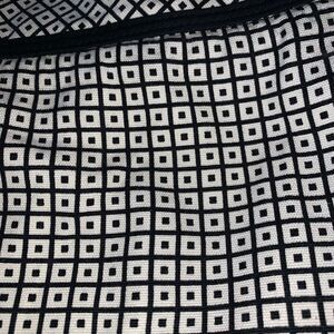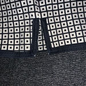 Black and white geometric pants. Small slit at the base. Side zip and button closure. There is a slight stretch to these cute pants. 23in inseam. In good condition