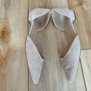 Talbots Cream Beige Suede Flats Gold Studded Shoes Size 7