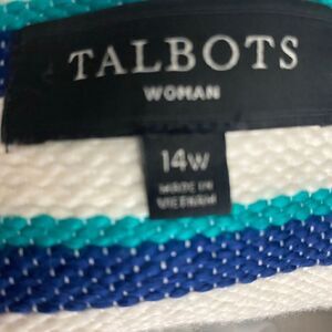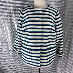 Talbots Cream/Teal/Navy Striped Fringe Adorned Jacket