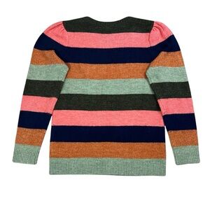 Talbots Crewneck Sweater Size Small Petite bold stripe pullover puff sleeve colorful multi color rainbow