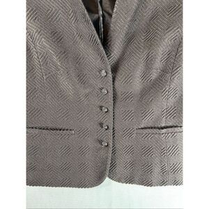 Sophisticated and timeless, this Talbots textured brown blazer adds classic elegance to any look. Designed with a geometric woven pattern and a tailored fit, it features a collarless neckline, six statement buttons, and lightly padded shoulders for structure. The midweight blend fabric offers both comfort and polish, while the full lining ensures a smooth fit.