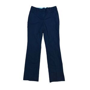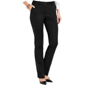 Black Freeport straight leg pants. Mid rise. Side pockets and back pockets. Belt loops. Button, hook and zip closure. Stretch fabric. 56% cotton/40% rayon/4% spandex. Size: 6. Preowned in good condition.