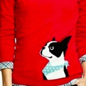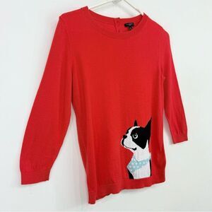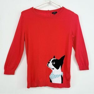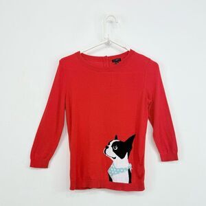 Talbots French Bulldog Graphic Red Fine Knit Crewneck Pullover Sweater