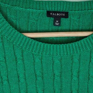 Talbots Green Cable Knit Button Design Long Sleeve Sweater