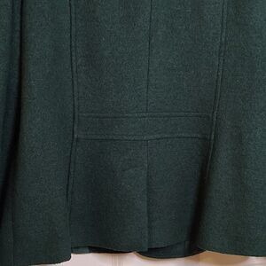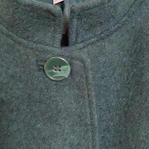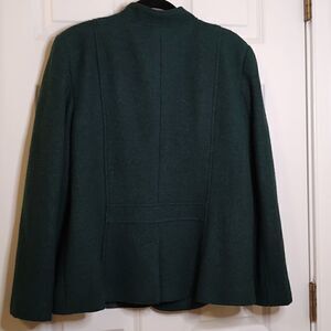 Talbot's green wool blend jacket/coat. This classic coat features a mandarin collar, 4 large green buttons to close, 2 slide pockets in the front and a vent in the back. Shaping seams in front and back. Fully lined in green polyester. Beautiful 3 season coat. 60% viscose and 40% wool. Size 16.