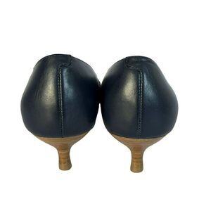 Talbots Indigo Leather Pointed Toe Woodtone Kitten Heel Pippa Vamp Wrap Shoes 6W