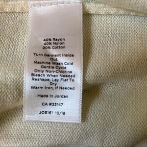 Rayon, nylon and cotton blend is soft, stretchy and lightweight. Great preowned condition- no flaws and very gently worn.