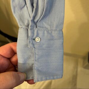 This nice blue long sleeve blouse is from Talbots. The item has a button front and cuffs. The blouse is blue and the surface of the material has a hounds tooth texture. The top is made out 100% cotton. The size is 10. The measurements are 22” L x 19” W (pit to pit) x 24” sleeve (shoulder to cuff). This blouse has been gently worn and is in great condition.
