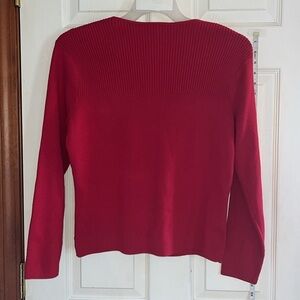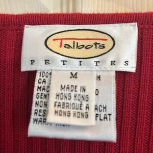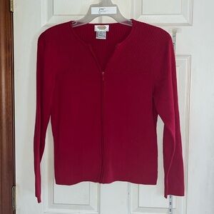 Talbots-M petite-red-rib detail,long sleeve, full zip,crewneck,cardigan sweater.