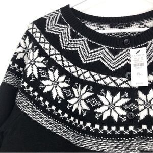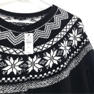 Talbots NEW Black Cardigan Sweater with White Nordic Snowflake Pattern