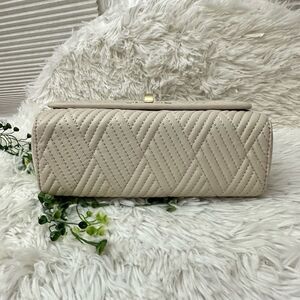 Talbots Off White Quilted Genuine Leather Chain Strap Turn lock Shoulder Bag
