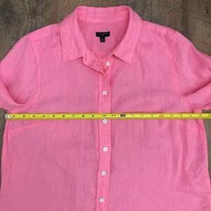 Talbots Petite MP 100% Pure Linen Pink Long Sleeve Button Down Boyfriend Shirt Tunic Top