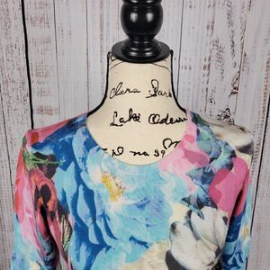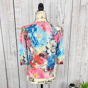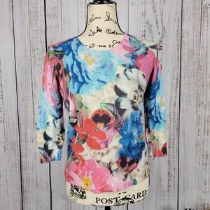 Talbots Petite Floral Crew Neck Sweater Blouse