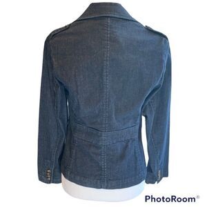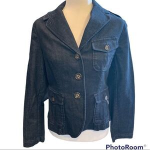 Talbots Petites denim blazer dark wash stretch military utility size 6