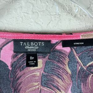 Talbots Pink Floral Silk Sleeveless Blouse Petite 8P Ruffle V-Neck Stretch
