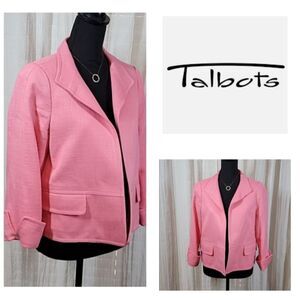 Talbots Pink Textured 3/4 Sleeve Open Front Blazer