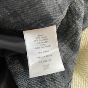 Talbots black and gray wool blend ankle pants with notched ankle and zip, double hook and button closure. No pockets except for a tiny key pocket at the waist. Laying flat measures 17 inches straight across the waist with a 10 inch rise and a 27 inch inseam
