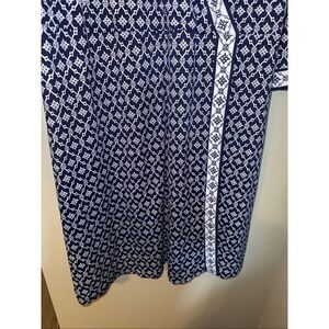 Talbots Plus Size 3X Faux Wrap Knee Length Dress Blue Geometric Print 3/4 Sleeve