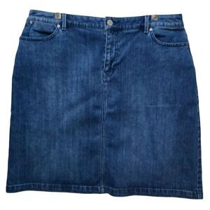 Talbots Plus Womens Denim Skirt 14W Dark Wash 5-Pocket Design Casual Knee Length