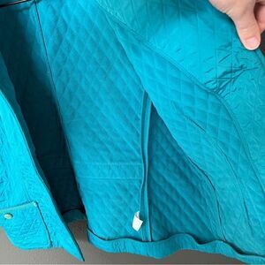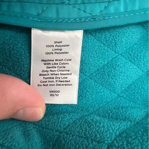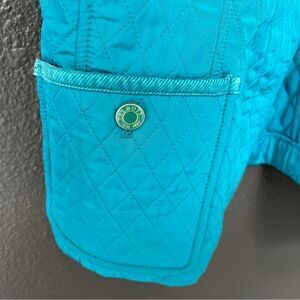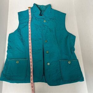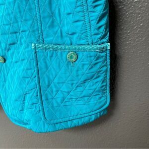 Talbots Quilted Womens Vest VGUC Size Large Teal Front Buttons Fleece interior Two front side pockets 100% polyester